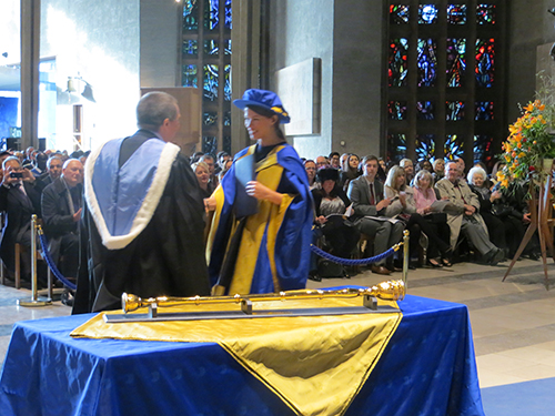 Three PhDs in total have been awarded. The traditional blue shining PhD gowns of Coventry University singled the three new PhDs out of around 500 Bachelor and Master graduates in their black academic robes. Congratulations to Kerstin and Thorsten.